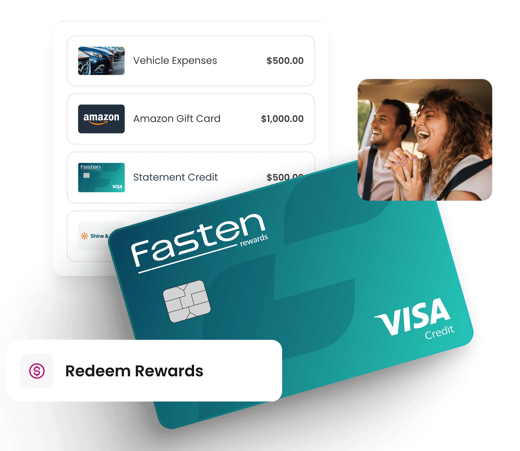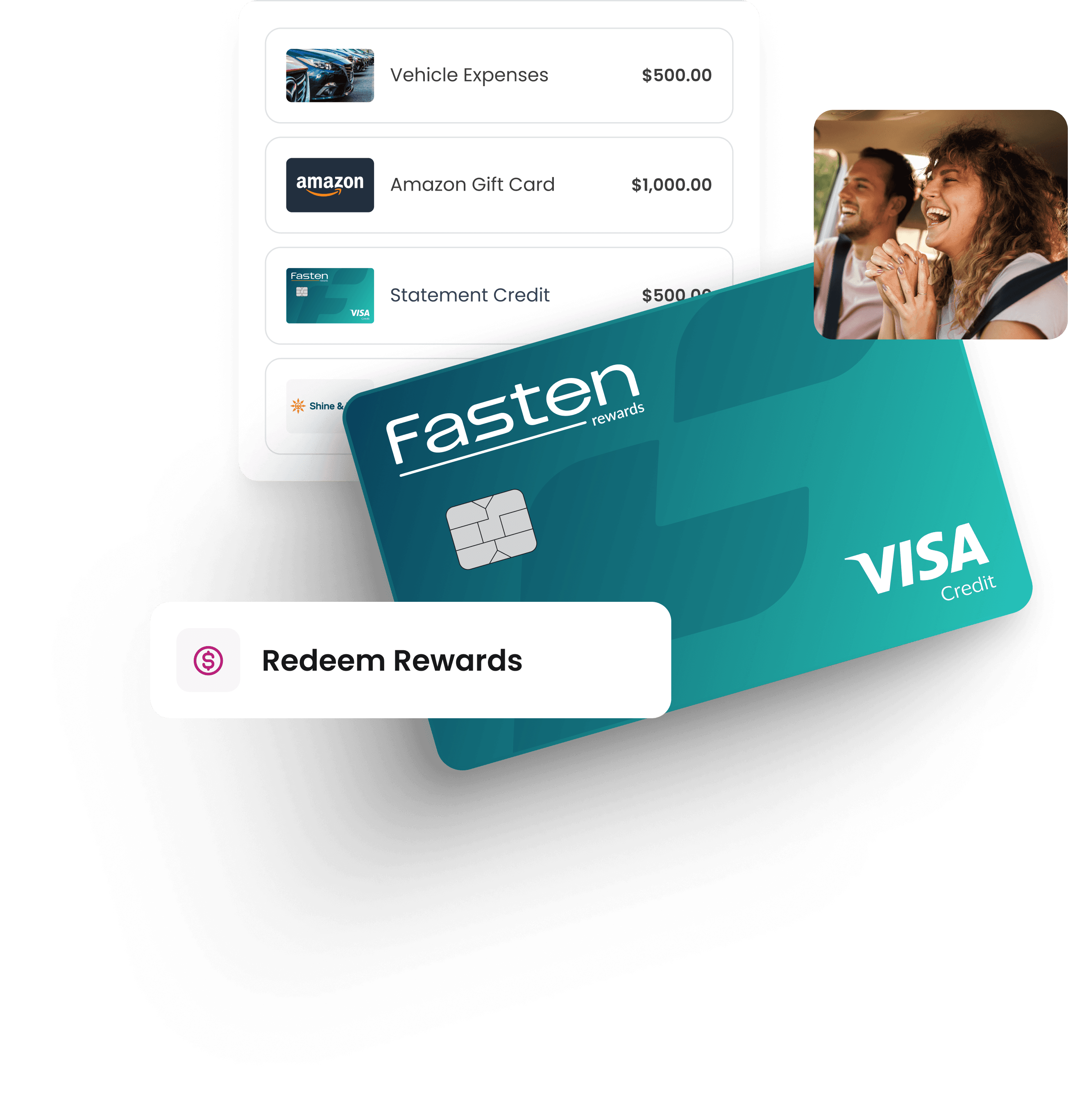 2. Points awarded for up to $1,000 in auto loan or lease spend per month with a Linked Account. Minimum $500 per month spend on the Fasten Rewards™ Visa Card to be eligible to earn points in this Spend Category.
